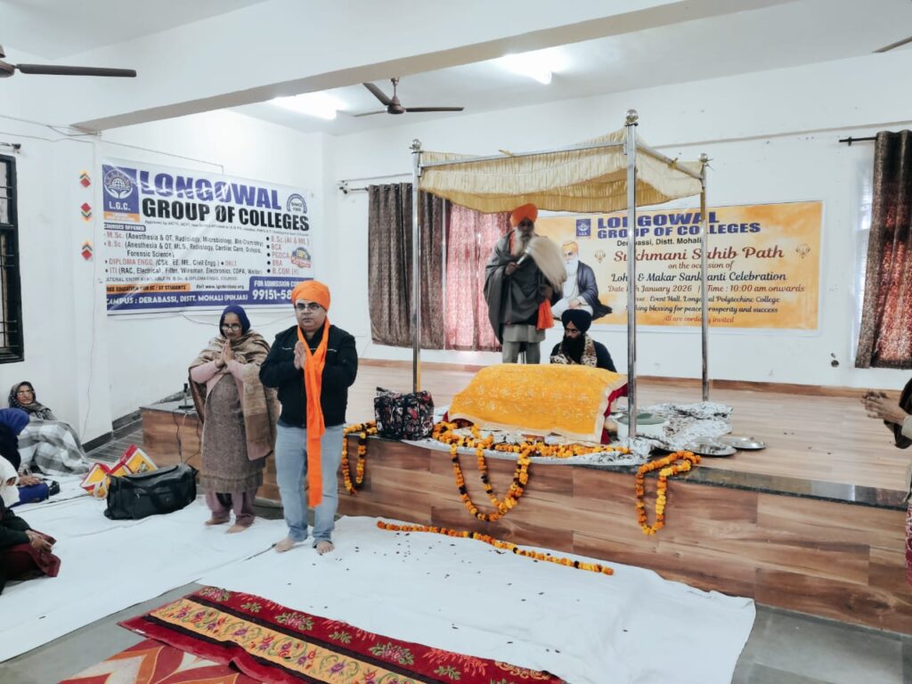 Longowal Group of Colleges solemnly observed a Sukhmani Sahib Path on the auspicious occasion of Lohri and Makar Sankranti on 13th January 2026. The programme commenced in a serene and devotional atmosphere, with prayers offered for peace, prosperity, and the well-being of all.